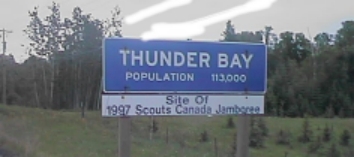 Got a bit of a sleep-in today, rising about 0830 hrs, then sharing an omelette that Bob cooked-up for breakfast. Then I rode downtown with Randy and Patti. I was looking for a couple odds-and-ends and a bank machine, and they were looking for an optical shop and a bike store. For those of us who had bypassed Winnipeg, the Lakehead was our first truly big city since Vancouver. Reaching it was a treat. We knew it would have all the major facilities. Randy's glasses, purchased just prior to the trip, had special UV coating and anti-glare protection, and were tinted slightly. Some time back, I think in Alberta, parts of the coating had started to lift, causing blurring through some areas of the lenses. He had been asking at various points along the way if a remedy or cure was possible. As the days passed the deterioration continued, to the point where his vision is now truly being impaired. We found an optical lab, but they closed on Saturdays. A big optical shop in the Inter-City Mall told Randy that the best they could do would be to make him some new lenses. They were kind enough to phone his local store in Smithers, B. C., and explain the situation to them. The Smithers store promised to reimburse Randy for the cost of the replacement lenses. All the bells and whistles weren't on the new ones, but at least he could see properly again. I left my friends there, returning to the University to clean up my bike and find some lunch.